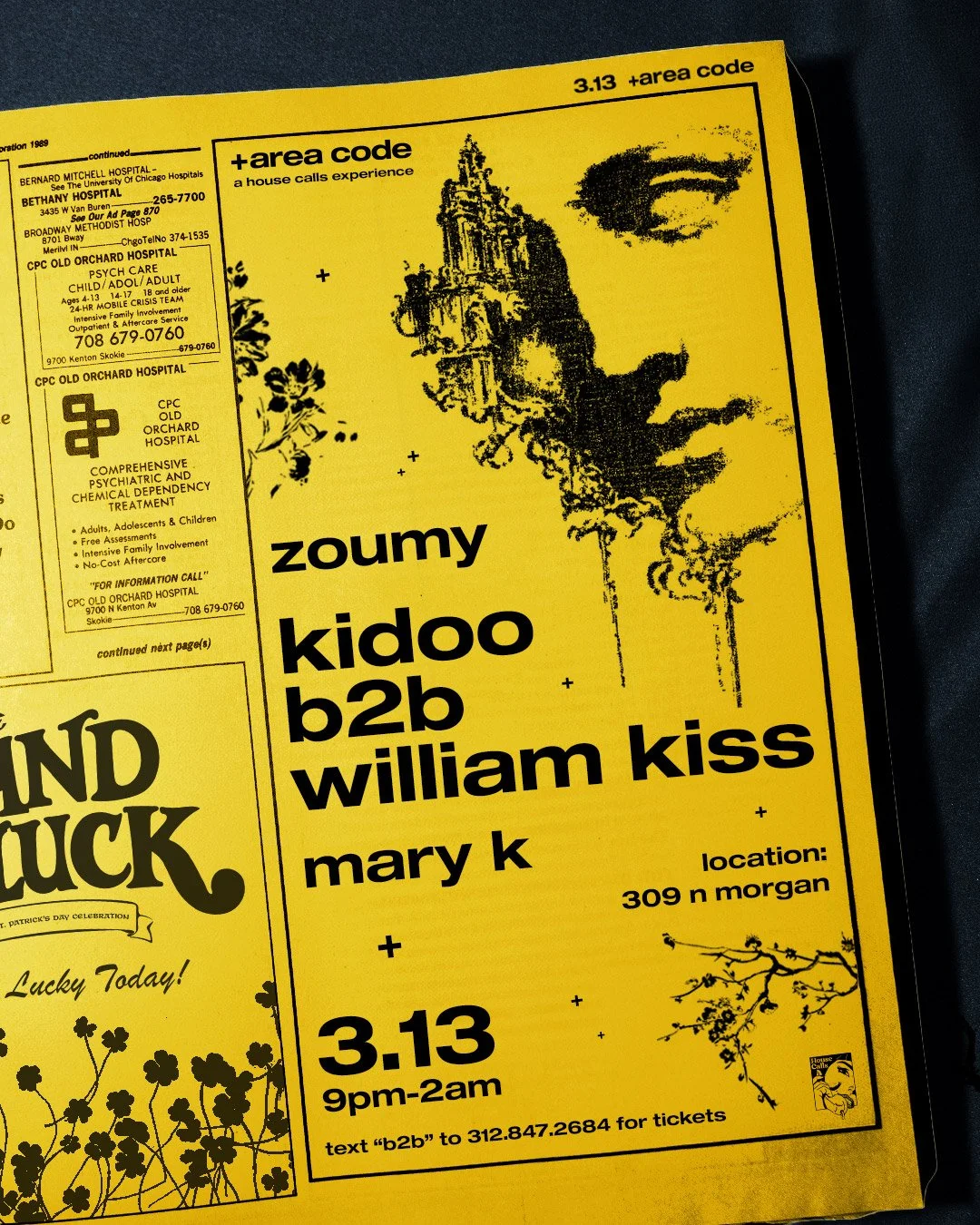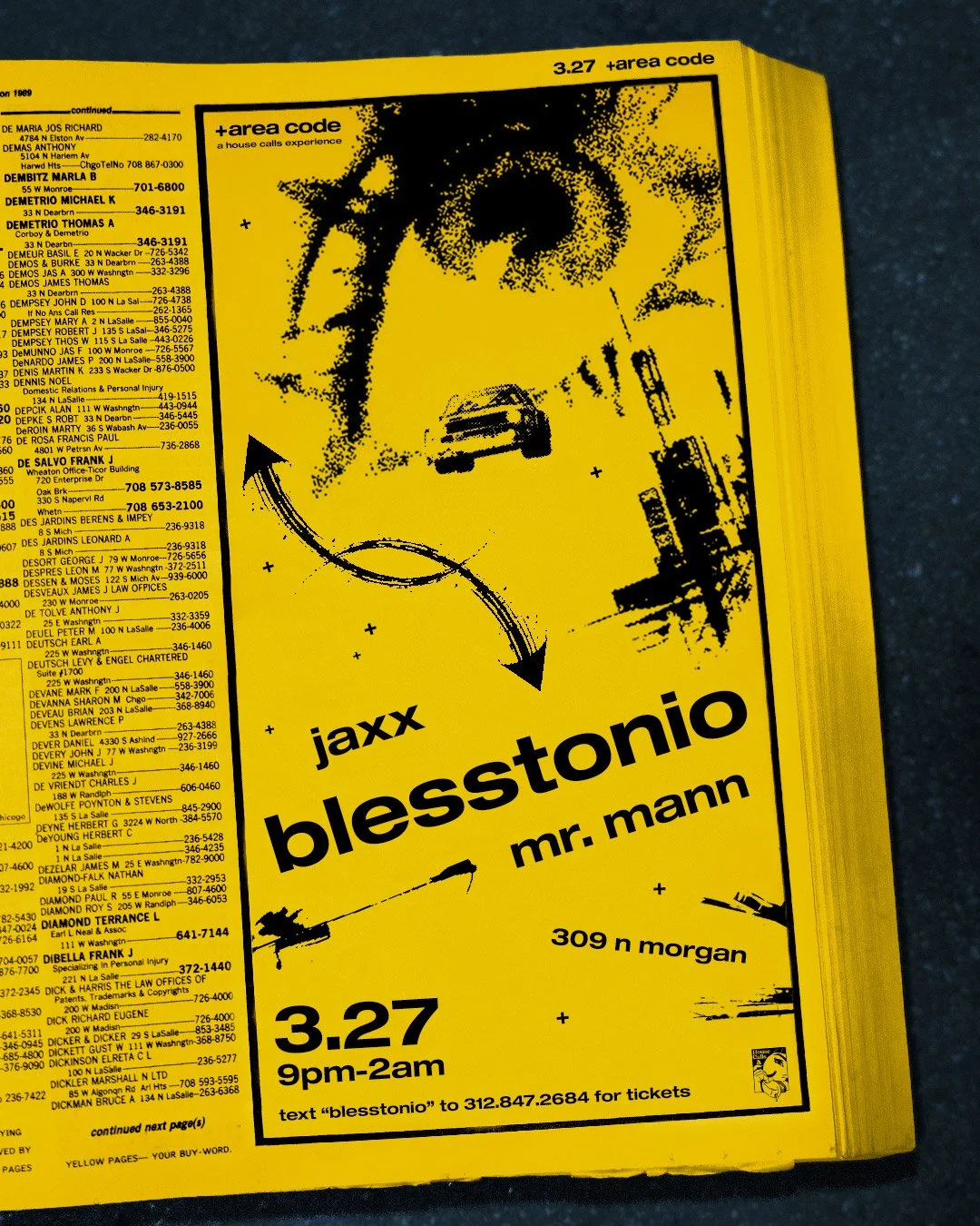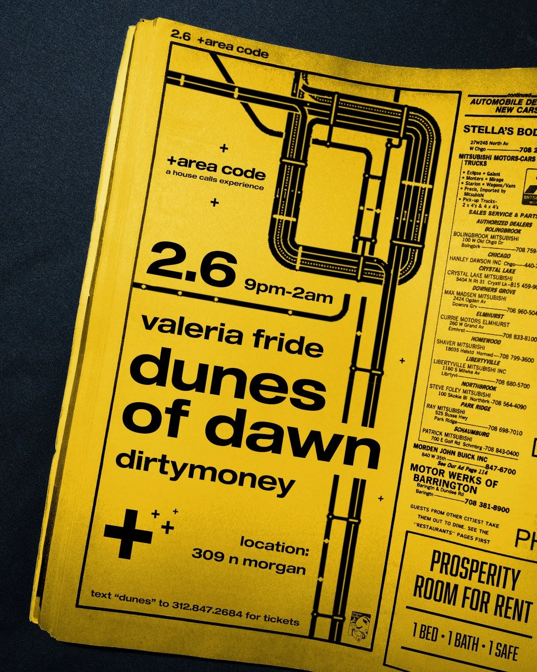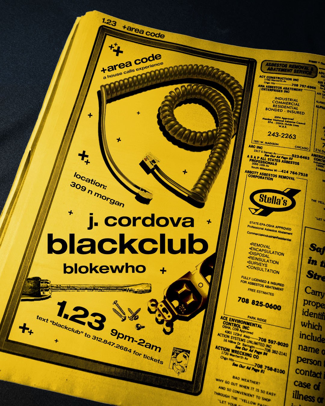 +area code is a timeline within the House Calls universe that reflects 90s and Y2K aesthetics with an emphasis on rave culture, escapism, urban travel. and exploration. This boom of technology made us feel digitally connected but often socially empty. With technology and surveillance encroaching, we had to start speaking in code, gathering in unconventional spaces, and liberation ourselves from phones. Locations will be kept secret from all non-ticket holders, urging people to find the code and tap into our hotline.