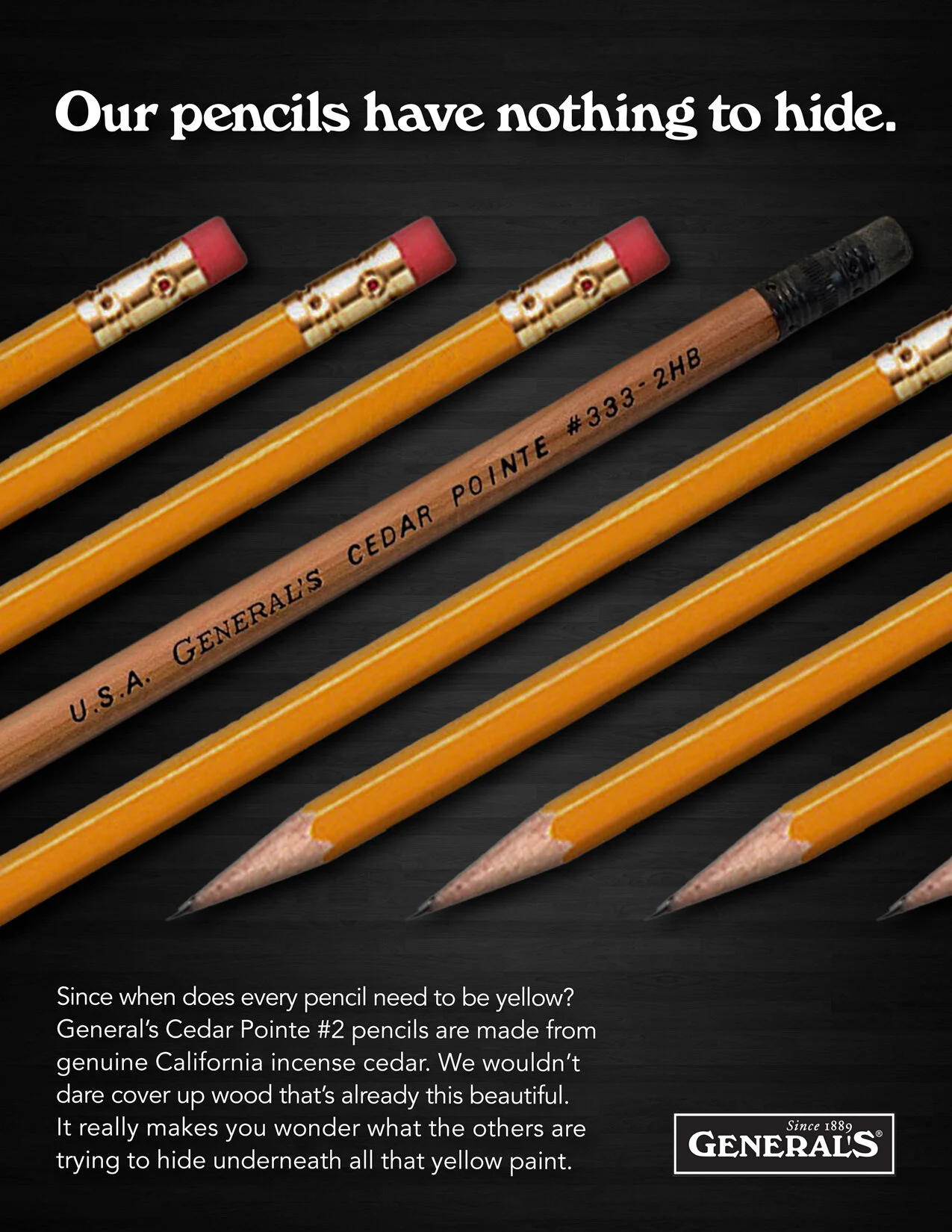 75% of pencils are yellow. No wonder General’s Cedar Pointe #2 Pencil stands out from the crowd.